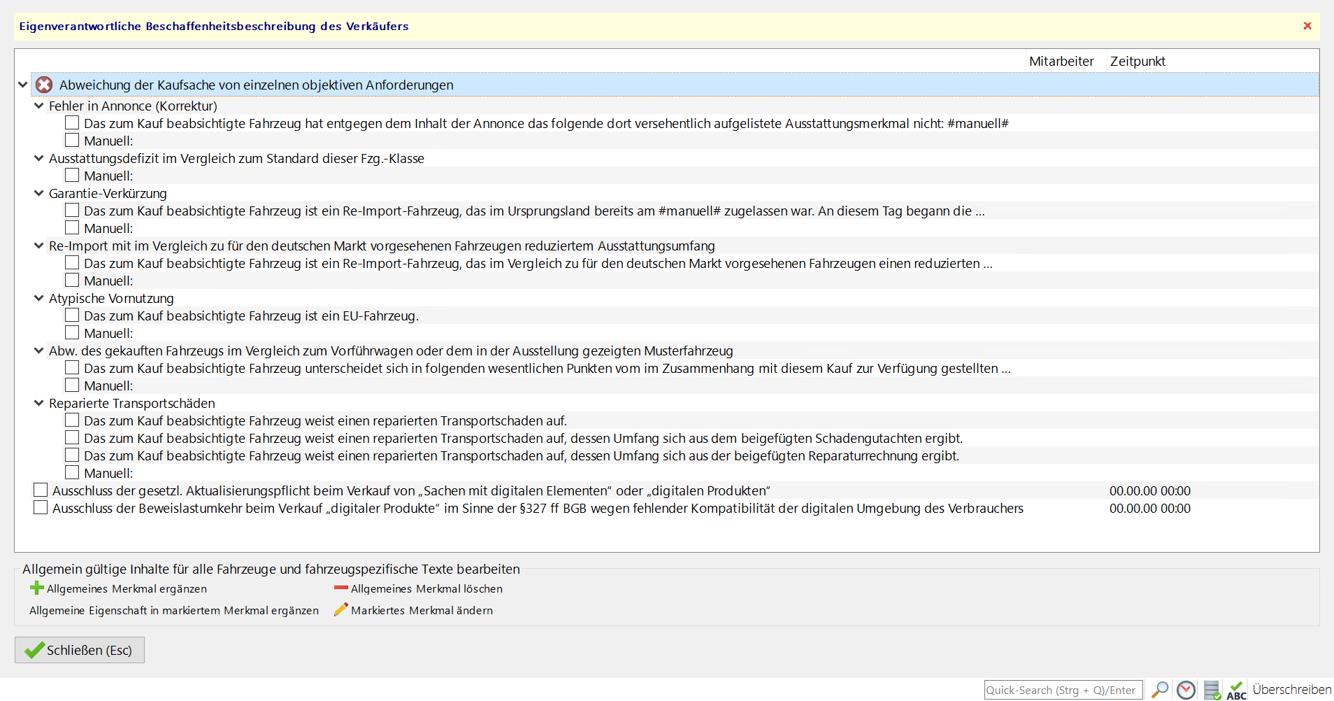 Erstellen Sie ein Fahrzeug-Angebot und führen Sie die nötigen Schritte im Rahmen der Sachmängelhaftung, wie z. B. die Beschaffenheitsbeschreibung durch. Geben Sie anschließend den Kaufvertrag aus.