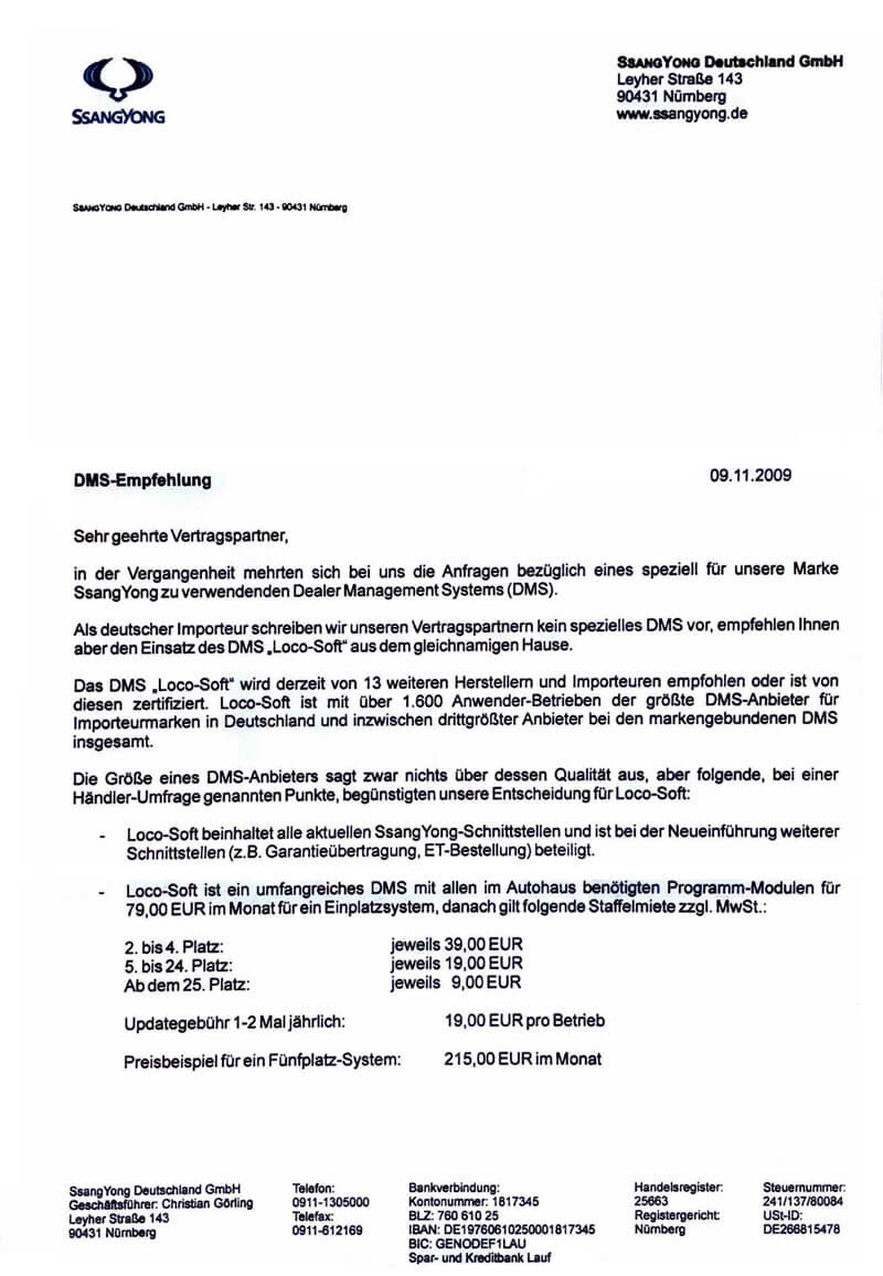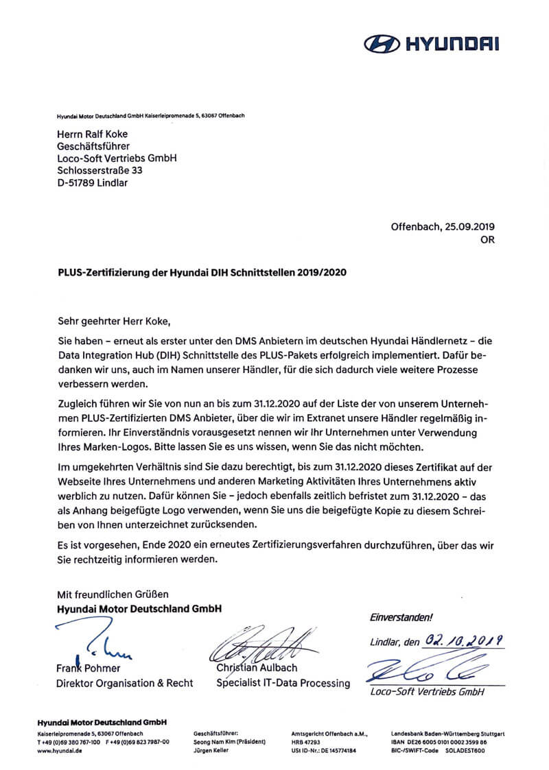 Loco-Soft steht an erster Stelle der Software-empfehlungen der Hyundai Motor Deutschland GmbH